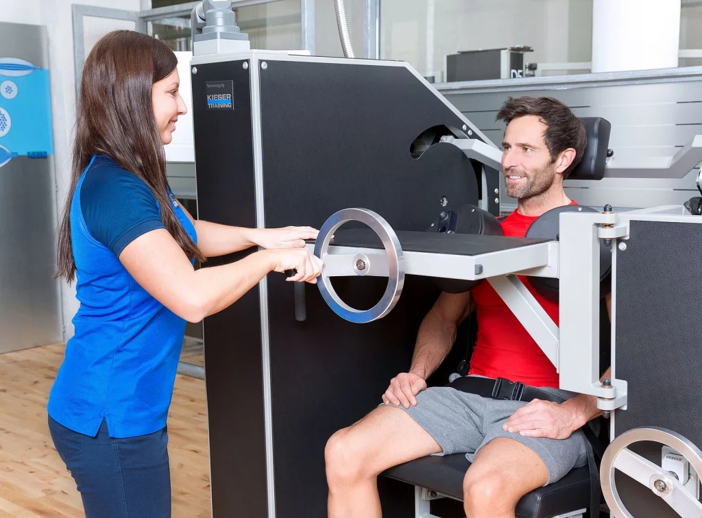 Wir begleiten Sie regelmäßig beim Training, achten auf Ihre Trainingsausführung, messen mit Hilfe eines Sensors Ihr Kraftniveau und zeigen Ihnen neue Trainingsmethoden